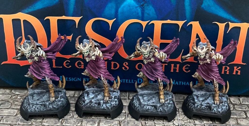 Descent Legends of the Dark was a slower painting project, with forty models. This game has some of best produced gaming models, one of the few that can legitimately claim to push Games Workshop for quality, and there is no building work required. The artwork and sculpts for this game have a slightly unique and quirky feel, which makes it stand out as different from the many sets i have already done.