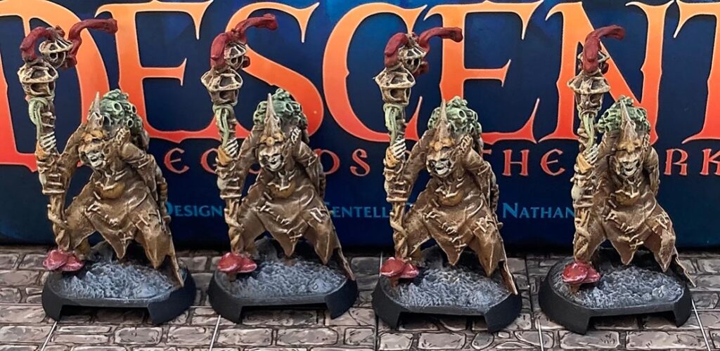 Descent Legends of the Dark was a slower painting project, with forty models. This game has some of best produced gaming models, one of the few that can legitimately claim to push Games Workshop for quality, and there is no building work required. The artwork and sculpts for this game have a slightly unique and quirky feel, which makes it stand out as different from the many sets i have already done.